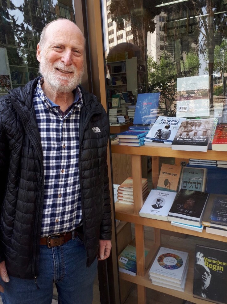 Wow–just heard that Torah from the Years of Wrath got promoted to the window display at M. Pomeranz Books in Jerusalem! Thanks to my friend Dr. Mike Chigel for plugging the book to MR. POMERANZ HIMSELF, shown here just outside the display! I’m really grateful to be part of the community of students of the Piaseczno Rebbe world-wide–really satisfying to see his Torah displayed in this prestigious location. Shabbos started super-early this morning!