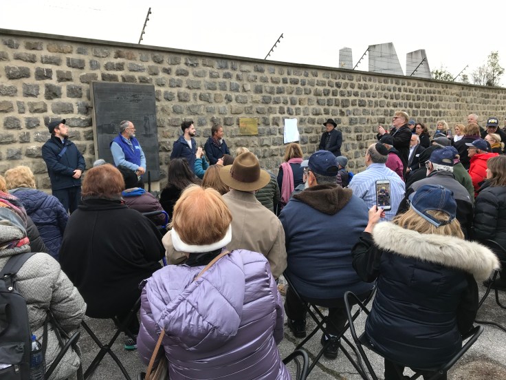 Under an overcast, threatening sky, we gathered near the entrance to Mauthausen to dedicate our own memorial to Simon Wiesenthal. Rabbi Stuart Weiss, our spiritual guide on this difficult journey, introduced a series of speakers to commemorate Wiesenthal’s memory, including Rabbi Marvin Hier and Rabbi Abraham Cooper of the Museum of Tolerance and several dignitaries from the local government.