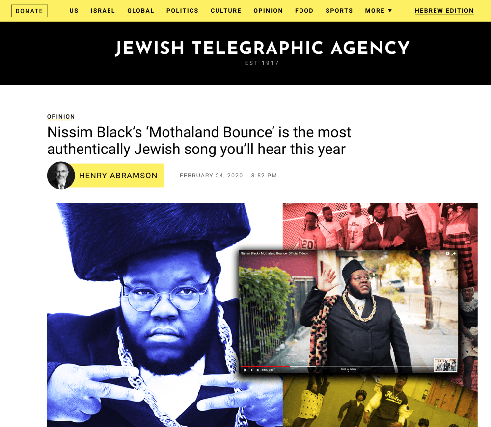 Here’s an article I just published on JTA. about Nissim Black’s remarkable Mothaland Bounce. The genre is a little outside my comfort zone–I normally only write on Jewish history and thought–but I had a LOT of fun writing it. Thanks to my 18-year old son for explaining hip-hop to me.