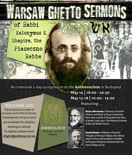 Most important line on this poster is at the bottom: “The Language of the Symposium is English.” Translation of the poster is below. Videos are forthcoming from the Ashkenazium on their YouTube channel, some clips on Facebook.