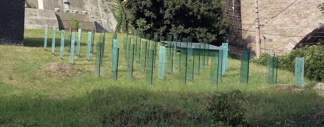Unexpected and unexplained, a phalanx of glass obelisks emerge silently from the earthen mound, punctuating the atmosphere above what appears to be an anonymous tel. Some are transparent, others pebbled and translucent, but all glow with a faint green hue. Unyielding, they stand in rigid formation on the angled surface of the earth. These mute sentinels bear witness to the earthly remains and heavenly destination of 23 holy Jews of Bratislava, Slovakia, as well as the saintly scholar Moses Schreiber, known to generations of his followers as the “Seal of the Scribe:” Hatam Sofer.