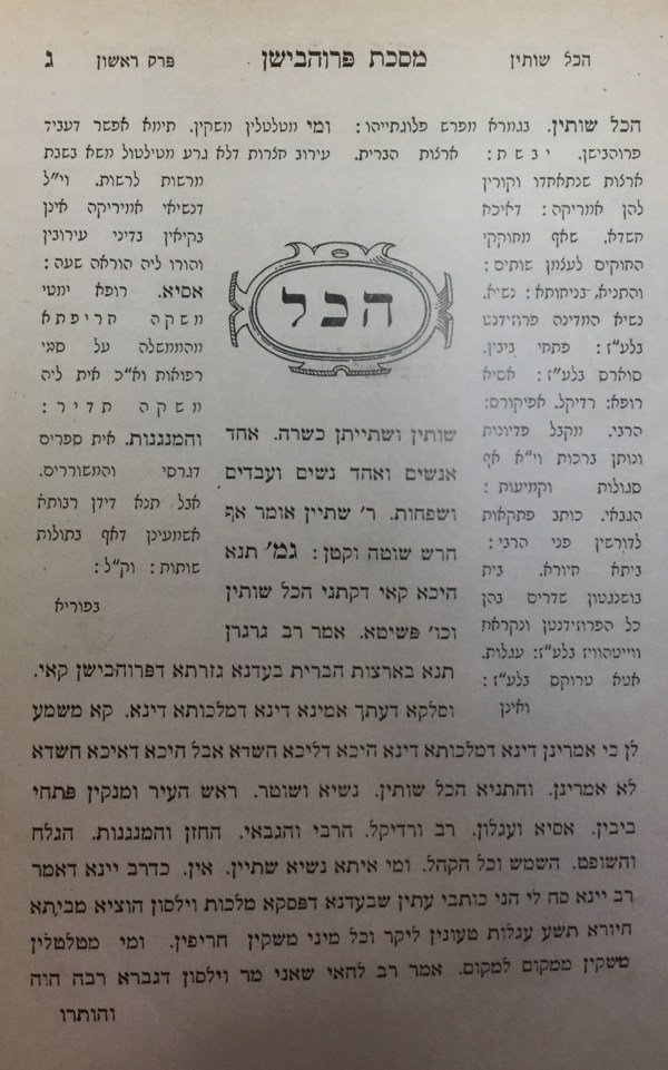 Tractate Prohibition is best enjoyed by readers familiar with Talmudic terminology, who will appreciate its subtle allusions to classic passages Mishnah and Gemara (“ha-kol shokhtin,” the opening of tractate Hulin, is rendered as “ha-kol shotin:” “everyone is eligible to perform ritual slaughter” now reads “everyone is eligible to drink). Even readers with less experience in Talmud, however, will enjoy the social satire evident on every page. The text wonders, for example, if the mandated temperance extends to “Mar Vilson,” meaning President Woodrow Wilson, during whose term the 18th Amendment was enacted. The “Rabbis” conclude that President Wilson is exempted from prohibition “ki gavra rabah hu,” meaning “he is a great man.”